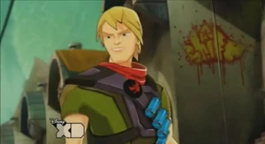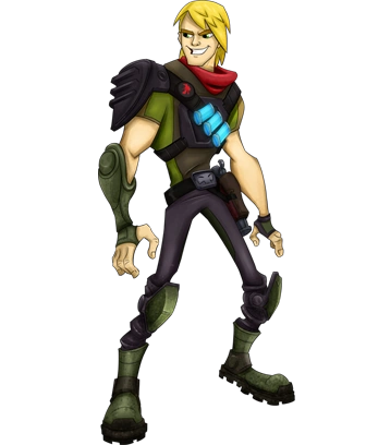 Billy is the leader of the Hooligang. He is a teen rebel slugslinger who spends most of his time illegally tricking out his Mecha-beast to compete at the racetrack by day and by night he'll steal whatever he can get his dirty hands on. He gives Slugslinging a bad name! [1]