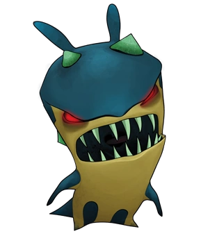 Hop Jacks have a dirty yellow skin and blue backing (and marks coming from the below their body), as well as small green spikes in place of the red markings on their non-Ghouled selves. They have pure red eyes.