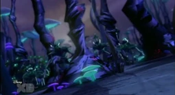 - An image in a book seen in "Back to Blakk" appears to depict a Shadow Clan member attacking a fleeing Dark Bane, implying past conflicts between the two species and the possibility that the Shadow Clan were the ones to seal the Dark Bane in the Deep Caverns. In the narration of this scene, Blakk says that the records he found spoke of "good and evil", opening the possibility that the Shadow Clan were not always perceived as monsters.
